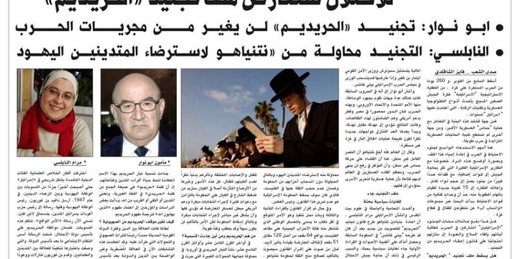 وفي سياق أخر أكدت المحامية والباحثة في علوم بيت المقدس والشأن الاسرائيلي مرام النابلسي , أن اعادة بنيامين نتنياهو طرح قانون تجنيد “الحريديم” للتصويت من جديد بعد أن كان قد طرحه “بيني غانتس” في الحكومة السابقة وحصل آنذاك على أغلبية الأصوات في القراءة الأولية جاء لغايات سياسية بحتة، والسبب الرئيسي في ذلك أن حاجة جيش الاحتلال لتجنيد المزيد من الجنود أصبحت حاجة ماسة وعاجلة، الأمر الذي كان يلوح بوضوح بضرورة إلزام أتباع طائفة “الحريديم” على التجنيد، لأن عدم تجنيدهم يعني استنزافا كبيراً في قوات الاحتياط التي لم تعد قادرة على تلبية الحاجة المستمرة للجنود المقاتلين في قطاع غزة .