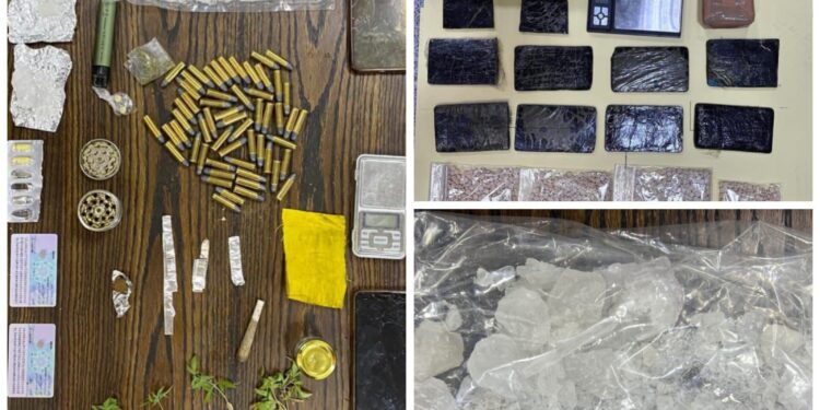 كما وأُلقي القبض في لواء الرمثا كذلك على شخصين بحوزتهما نصف كغم من مادة الكريستال المخدرة ، فيما جرى في جنوب العاصمة مداهمة مروجين خطرين للمخدرات أُلقي القبض عليهما وضبط بحوزتهما كمّيات من المواد المخدرة والذخيرة الحية .