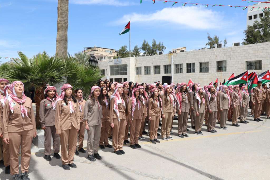 وأنشد الكشافة والمرشدات، نشيد “خافقات في المعالي”، حيث تزينت مباني وساحات الوزارة ومديريات التربية والتعليم ومدارس المملكة، بهذه المناسبة بالأعلام والرايات زهوا وفخارًا، في أجواء احتفالية بهذا اليوم الذي يحمل معاني الاعتزاز بالوطن وقائد الوطن.