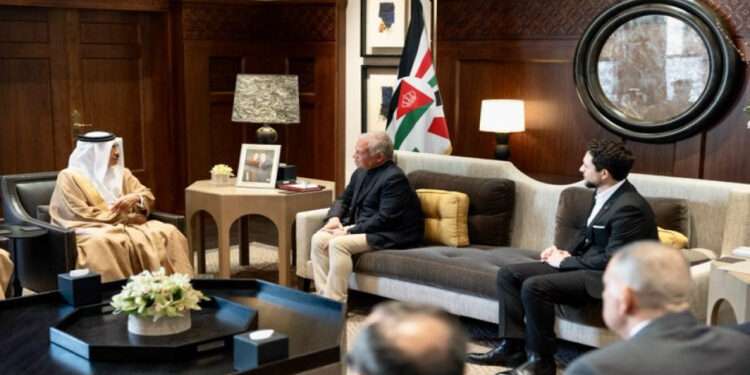 وحمّل جلالته خلال اللقاء، الذي عقد في قصر الحسينية بحضور سمو الأمير الحسين بن عبدالله الثاني ولي العهد، وزير الداخلية البحريني تحياته لجلالة الملك حمد بن عيسى آل خليفة.