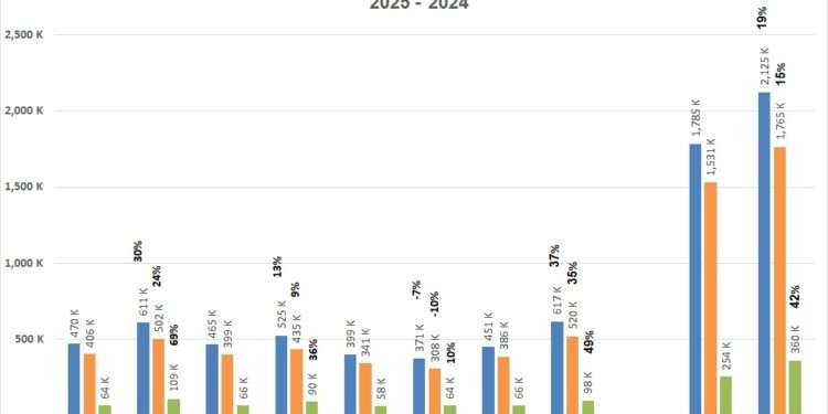 وارتفع عدد سياح المبيت لنفس الفترة اعلاه إلى 1.765 مليون زائرًا مقارنة بـ 1.531 مليون زائرًا في نفس الفترة من عام 2024، محققًا زيادة بنسبة 15.3 %، كما شهد زوار اليوم الواحد زيادة ملحوظة، حيث بلغ عددهم نحو 360 ألف زائر، مقارنة بـ 254 ألف زائر في عام 2024، محققًا نموًا بنسبة 41.6 %.