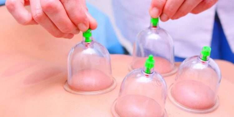 الحجامة الجافة: عملية وضع كاسات مفرغة من الهواء على سطح الجلد من غير إحداث جروح او خدوش.