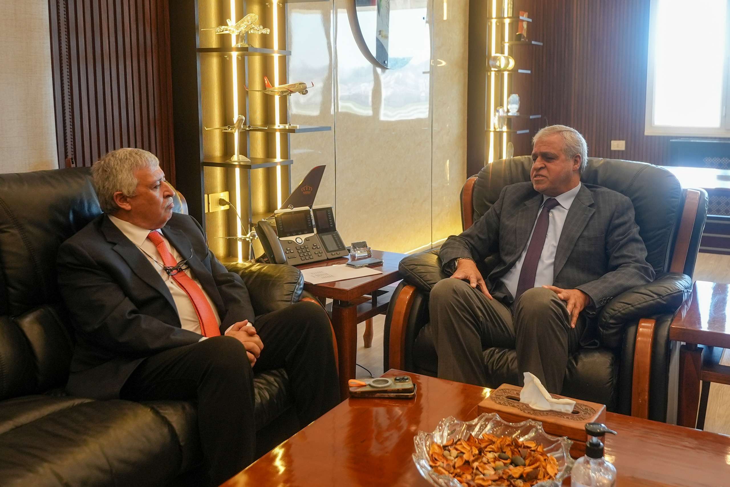 والتقى القطامين رئيس مجلس مفوضي الهيئة الكابتن ضيف الله الفرجات، بحضور أمين عام وزارة النقل فارس أبو دية، واستمع الوزير إلى شرح مفصل من الفرجات حول الإجراءات التشغيلية والاحترازية المعتمدة لضمان سلامة الملاحة الجوية، مؤكدا أنه لا يوجد إغلاق للأجواء الأردنية أمام حركة الطيران المدني، وأن الحركة الجوية مستمرة وفق آليات مدروسة تضمن أعلى درجات السلامة.