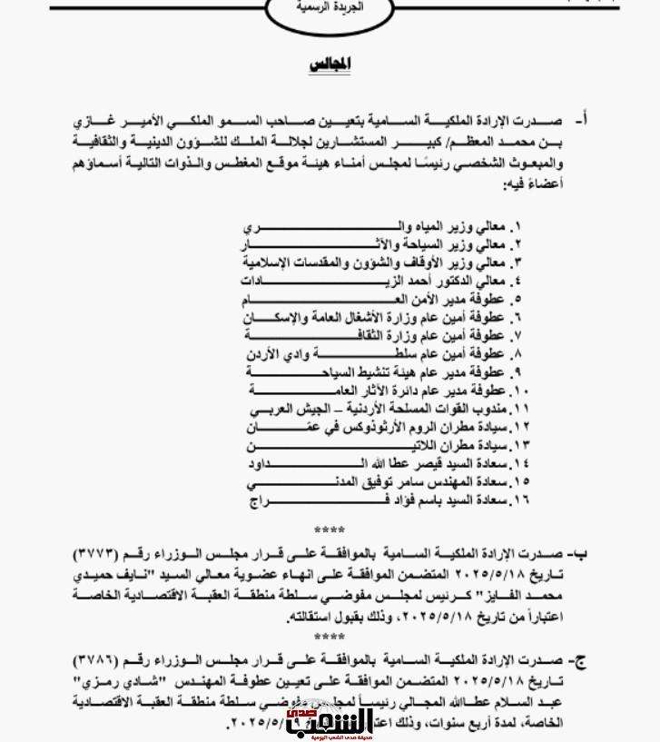 كما صدرت إراداتان ملكيتان بشادي المجالي ونايف حميدي الفايز.