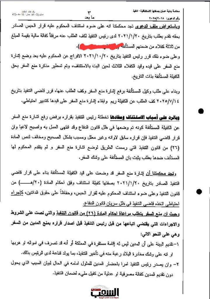 محكمة بداية استئناف عمان تنصف المواطنين برفع إشارة (منع السفر) على المحكوم عليه