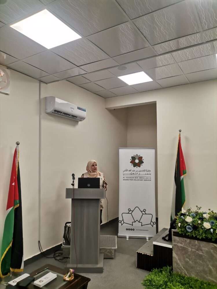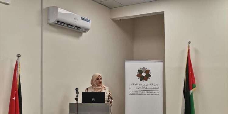 وأكدت المدربة نايفة العليمات، خلال الجلسة، أهمية العمل التطوعي ودوره في تنمية المجتمع ودعمه، مشيرة إلى ضرورة تعزيز ثقافة التطوع، ومبينة دور الجائزة في تسليط الضوء على الأعمال التطوعية ذات الأثر والاستدامة.