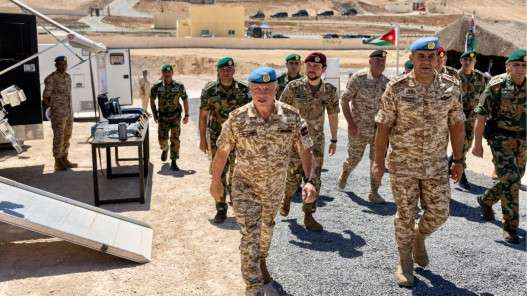 واستمع جلالته، بحضور رئيس هيئة الأركان المشتركة اللواء الركن يوسف الحنيطي، إلى إيجاز من مدير سلاح الهندسة حول إنجازات المديرية في مجالات الإسناد الهندسي العام ومعالجة الذخائر العمياء.
