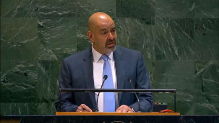 ورحب عبيدات، خلال كلمته في الجمعية العامة للأمم المتحدة، بالخطة الأميركية لإنهاء الحرب في قطاع غزة، والسماح بوصول المساعدات الإنسانية، وإعادة إعمار غزة، وعدم السماح بضم الضفة الغربية.