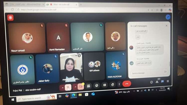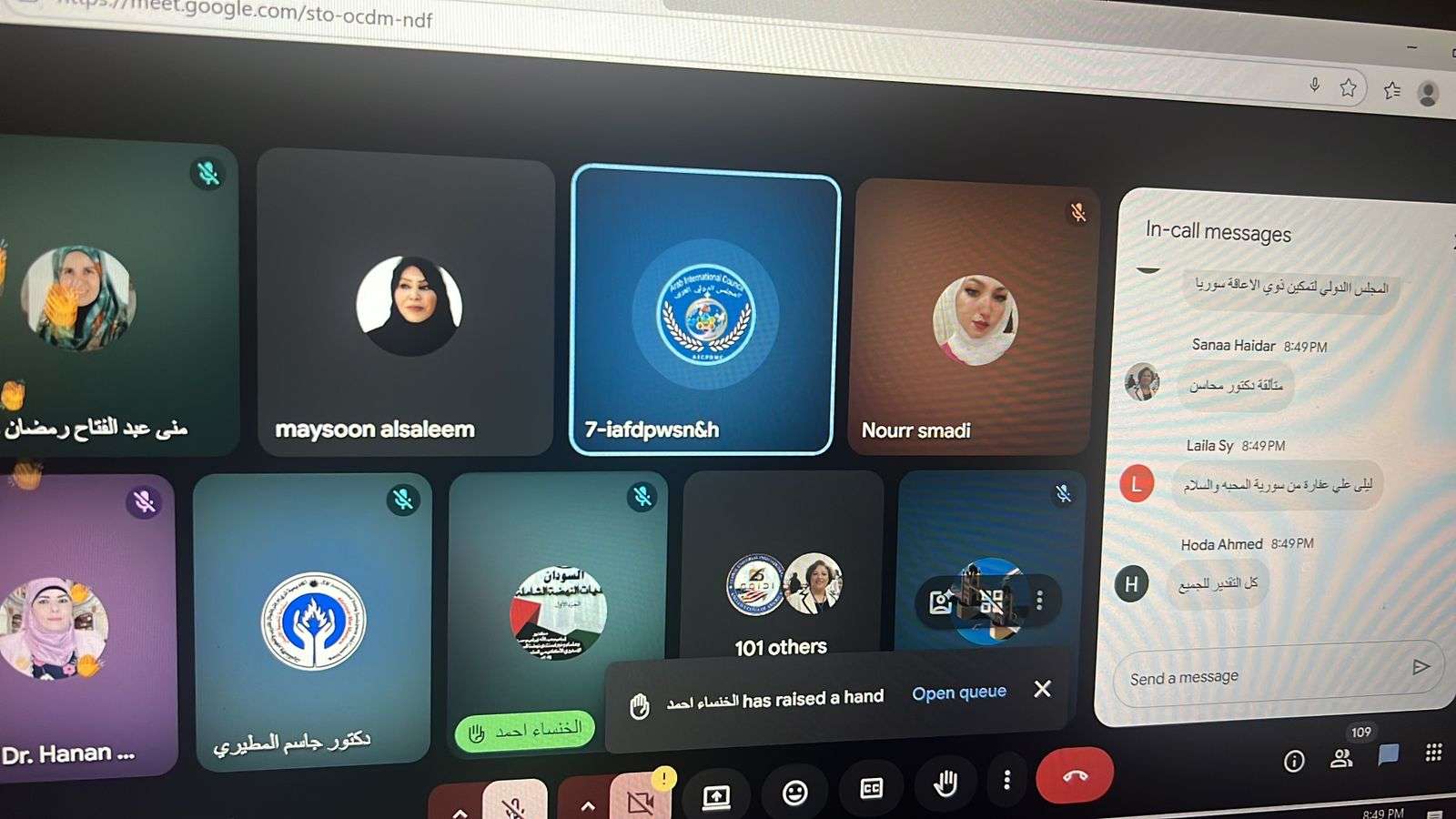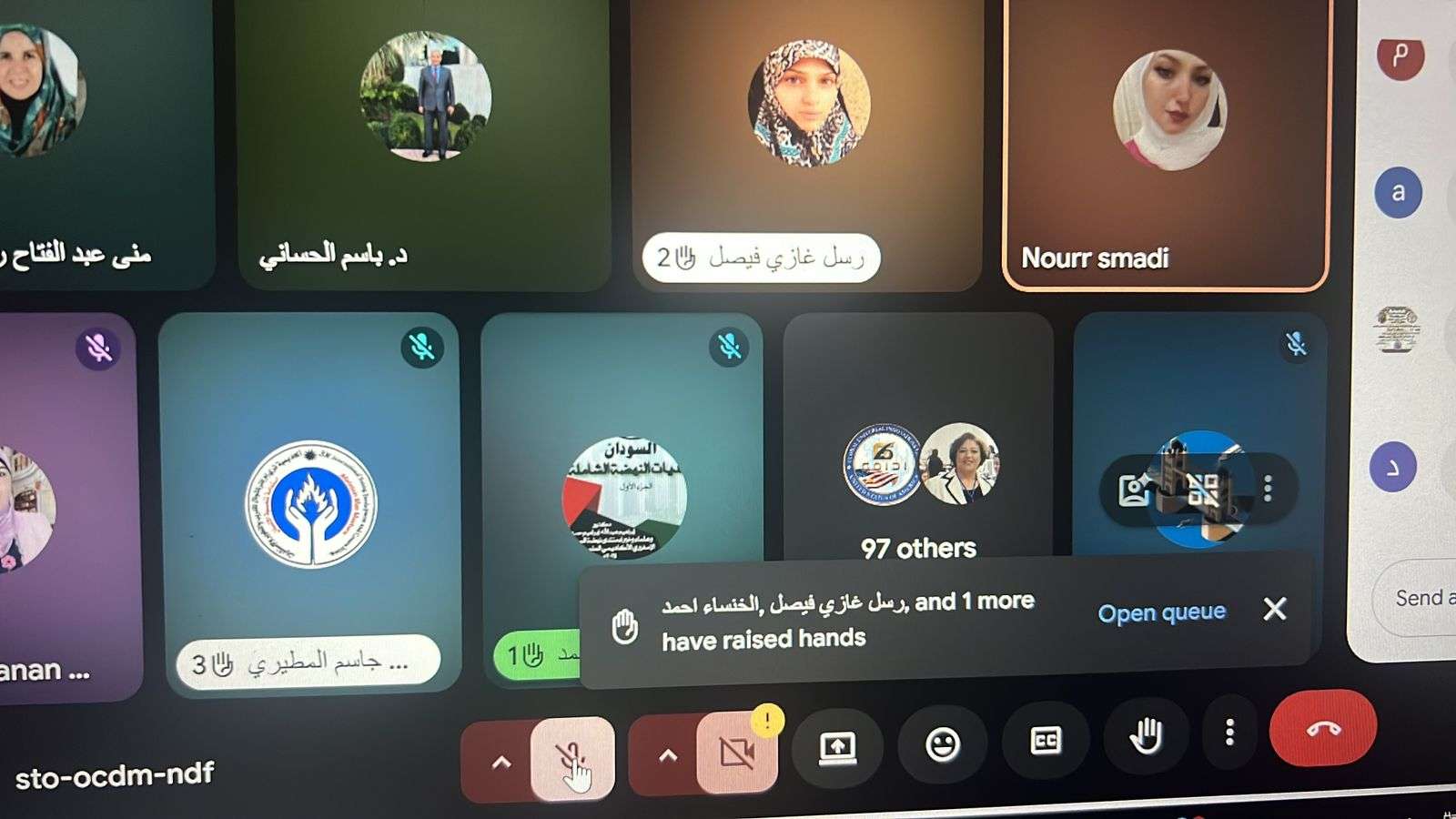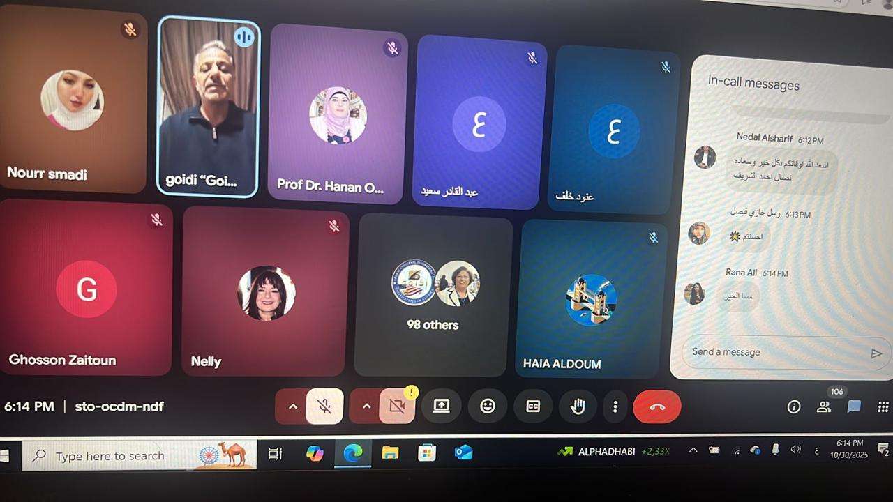 الأستاذة محاسن مدللة (سوريا)، الدكتور عبد القادر سعيد (ألمانيا)، البروفيسور الدكتورة حنان عبيد (المملكة المتحدة)، الدكتورة سولافة إبراهيم (السودان)، والأستاذ نعيم غنيم (الأردن)،