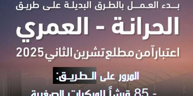 بدء تطبيق الطرق البديلة مدفوعة الرسوم من “الحرانة –العمري” خلال أيام