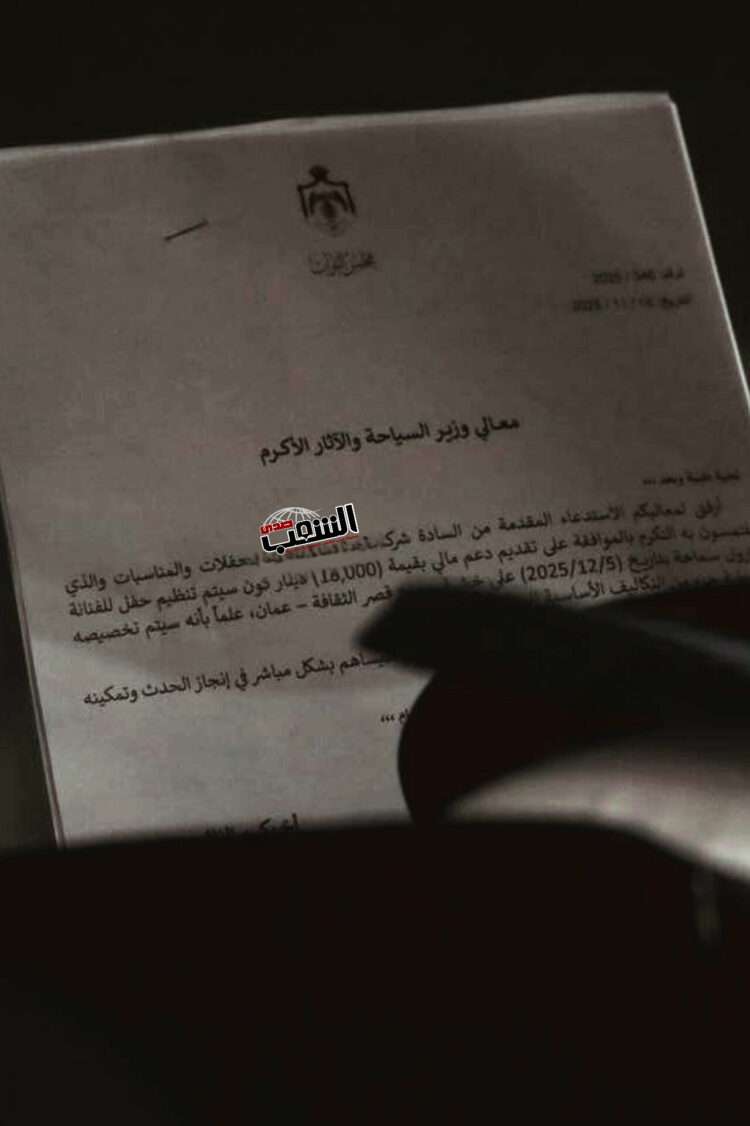 تقدّم أحد النواب بطلب إلى وزارة السياحة لتقديم دعم مالي بقيمة 18 ألف دينار لصالح شركة منظمة لحفل فني لمطربة عربية يُقام في الأردن مطلع الشهر المقبل.