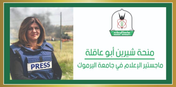 صدى الشعب – أعلنت كلية الإعلام في جامعة اليرموك عن فتح باب التقدم لمنحة الإعلامية الشهيدة شرين أبو عاقلة، لدراسة الماجستير في الإعلام للفصل الدراسي الثاني 2023-2024، وللعام الثاني على التوالي.