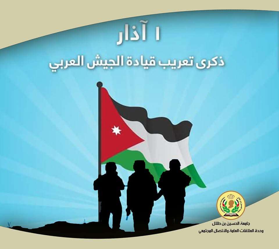 بإسمه ونيابة عن أسرة الجامعة ممثلة بكادرها التدريسي والإداري والطلبة بأطيب آيات التهنئة والمباركة بمناسبة ذكرى تعريب قيادة الجيش العربي، وانه في هذه المناسبة نستذكر القرار التاريخي الشجاع الذي اتخذه المغفور له جلالة الملك الحسين بن طلال طيب الله ثراه بتعريب قيادة الجيش العربي وتسليمها للضباط الأردنيين لترسيخ المعاني السامية للسيادة والحرية، كما ونعتز بما شهدته وتشهده القوات المسلحة الأردنية الجيش العربي اليوم في عهد جلالة الملك عبدالله الثاني من تطوير وتحديث لتكون بأعلى درجات الجاهزية والاحتراف ونموذجا في العطاء.