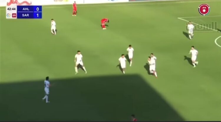 ولم ينتظر الفريق المضيف طويلًا، ففي الدقيقة 43، استغل عز الدين أبو مسعود خطأً كارثيًّا من حارس الصريح خالد عثامنة في التمرير، ليخطف الكرة ويسجل هدف التعادل.