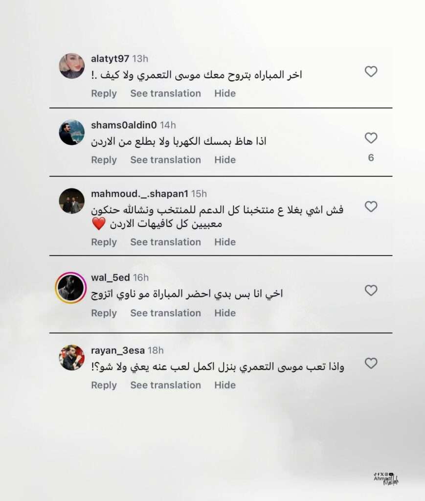 وكتب الملاح مرفقاً صور للتعليقات: “ردود فعل طريفة على أسعار تذاكر “”باقة الضيافة” لمباريات المنتخب الوطني الأردني في كأس العالم لكرة القدم 2026 في الولايات المتحدة الأمريكية والمكسيك وكندا.