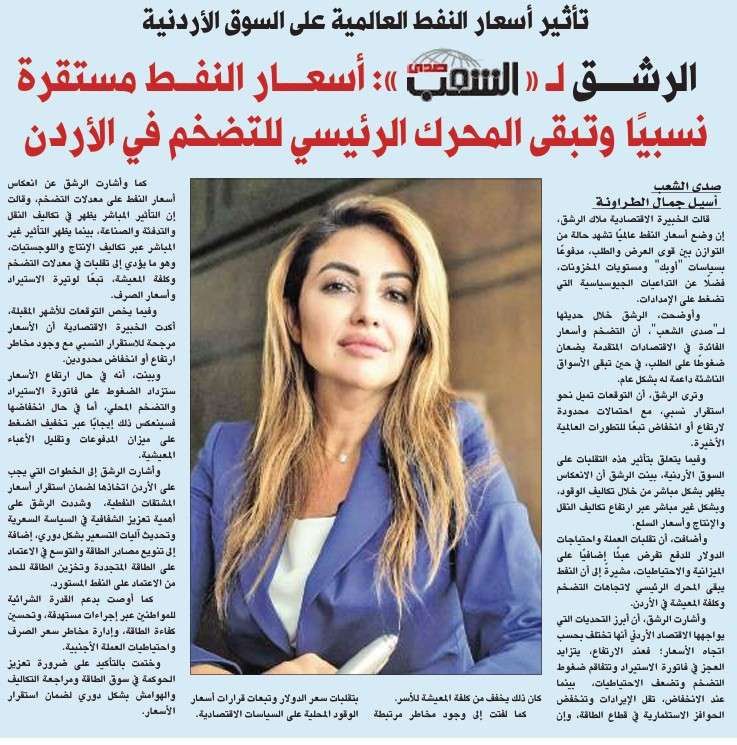 وأشارت الرشق إلى الخطوات التي يجب على الأردن اتخاذها لضمان استقرار أسعار المشتقات النفطية،