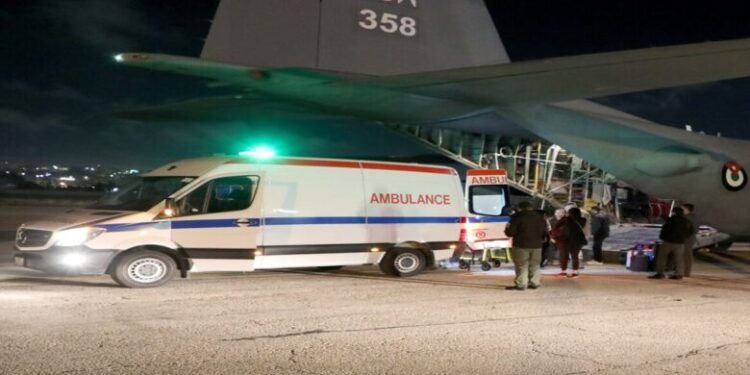وبيّن قائد طبابة سلاح الجو الملكي المقدم الطبيب معاذ المومني أنه تم إخلاء 4 أفراد من عائلة أردنية عبر طائرة مزودة بطاقم طبي متخصص، وأن حالة أحد المصابين خطيرة، فيما تبين أن الحالة العامة للباقين متوسطة.
