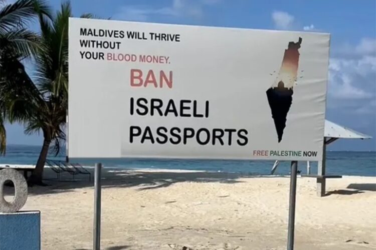 ووفقا ل(فرانس برس)، قال متحدث باسم الرئاسة، أمس الأحد، إن الرئيس محمد مويزو “قرر فرض حظر على جوازات السفر الإسرائيلية”، بدون إعطاء تفاصيل بشأن موعد دخول القرار الجديد حيز التنفيذ. كما أعلن مويزو عن حملة وطنية لجمع التبرعات بعنوان: “المالديفيون يتضامنون مع فلسطين”.