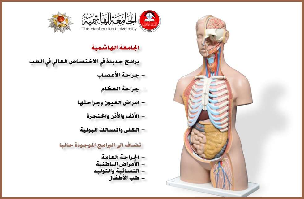 ويرتفع عدد برامج الاختصاص العالي في كلية الطب البشري في الجامعة الهاشمية بعد هذه الإضافة إلى تسعة برامج، حيث تطرح حاليا برامج في الجراحة العامة، والأمراض الباطنية، والنسائية والتوليد، وطب الأطفال، ما يجعل من الكلية مركزاً متكاملاً ومتميزاً للتعليم الطبي العالي في المملكة.