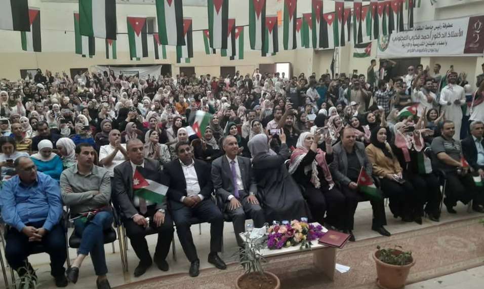 احتفلت كلية الزرقاء الجامعية، بمناسبة العيد التاسع والسبعين لاستقلال المملكة، برعاية عميد الكلية، الأستاذ الدكتور زيد سليمان العدوان، ومدير ثقافة الزرقاء، الأستاذ محمد الزعبي، بحضور أعضاء الهيئتين التدريسية والإدارية، وطلبة الكلية في مسرح الكلية/ الصالة الرياضية.