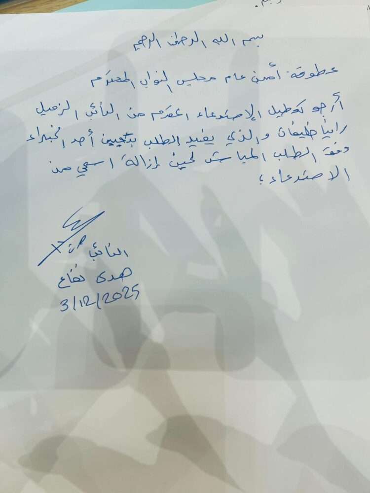 أعلنت النائب هدى نفاع عن إلغاء توقيعها على كتاب كان معداً لعرض سيرة أحد الخبراء على رئيس الوزراء، بعد أن تبين لها أن مضمون الكتاب يُعد بمثابة طلب تعيين مباشر.
