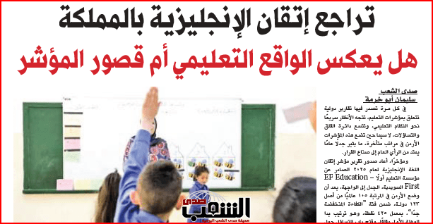 ومؤخرًا، أعاد صدور تقرير مؤشر إتقان اللغة الإنجليزية لعام 2025 الصادر عن مؤسسة التعليم أولًا – EF Education First السويدية، الجدل إلى الواجهة، بعد أن وضع الأردن في المرتبة 105 عالميًا من أصل 123 دولة، ضمن فئة “الكفاءة المنخفضة جدًا”، بمعدل 425 نقطة، وهو ترتيب بدا للوهلة الأولى مقلقًا، وفتح باب التساؤل حول واقع تعليم اللغة الإنجليزية في المملكة.