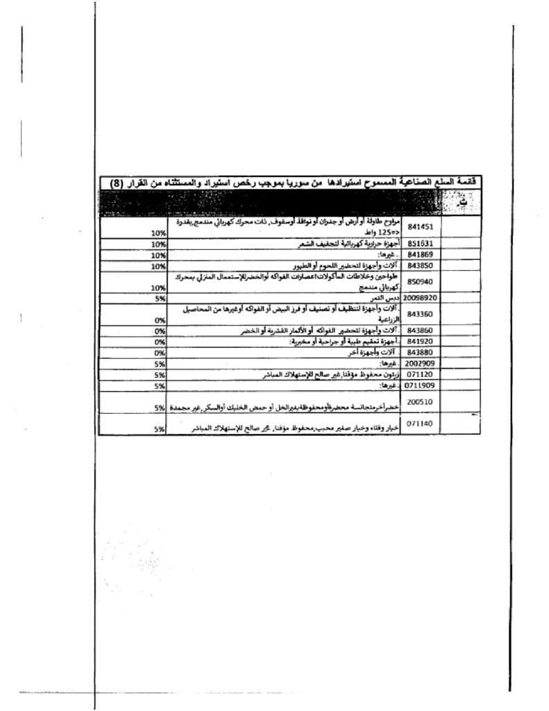 وبموجب القرار الجديد، الذي نشرته الوزارة اليوم الأربعاء، سيتم إدراج البنود الجمركية المستثناة ضمن قائمة السلع التي تحتاج إلى رخص استيراد، والصادرة وفقًا للقرار رقم (9)، وذلك اعتبارا من تاريخ صدور هذا القرار، و فق ما تظهره الوثائق التالية:
