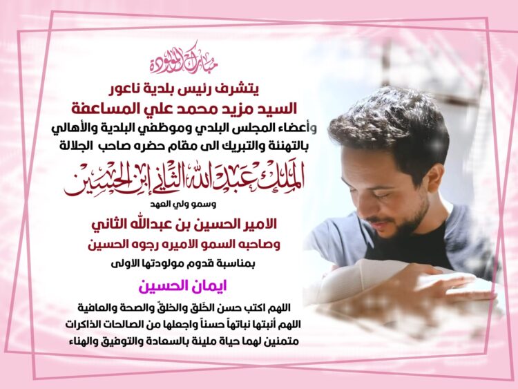 بلدية (ناعور الكبرى) تُهنىء بقدوم (الأميرة إيمان)