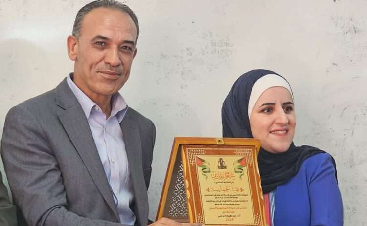 وقد جاء حفل التكريم بمبادرة طلابية من طلبة مساق “الحقوق والأخلاقيات والقوانين في التربية الخاصة”، الذي يُدرّسه الأستاذ الدكتور إبراهيم الزعبي من قسم المناهج والتدريس، حيث قدّم الطلبة الهدايا الرمزية للطالبة تقديرًا لتميّزها وإرادتها القوية.