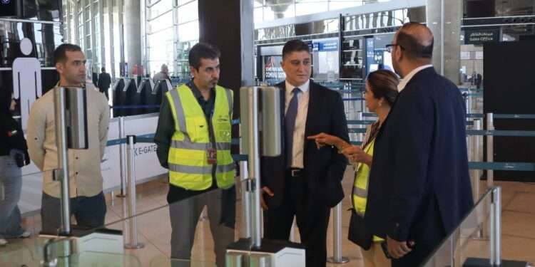 واطلع خلال جولة داخل المطار على الإجراءات التشغيلية الحالية، فيما جرت مناقشة المشاريع التحسينية المستقبلية، إلى جانب الوقوف على آخر التحديثات المتعلقة بالبوابات الإلكترونية والأنظمة التقنية، بما يسهم في رفع كفاءة الأداء وتحسين تجربة المسافرين.