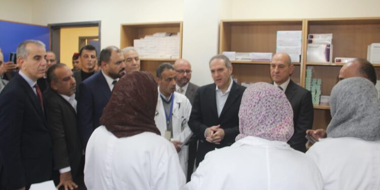 وقال الهواري إنّ وزارة الصحة تسير بخطى ثابتة نحو تطوير البنى التحتية لمستشفياتها ومراكزها الصحية بهدف توفير البيئة المناسبة والملائمة لتقديم الخدمة الصحية الفضلى للمرضى والمراجعين بجهود كوادرها الطبية، والتمريضية، والفنية، والإدارية.