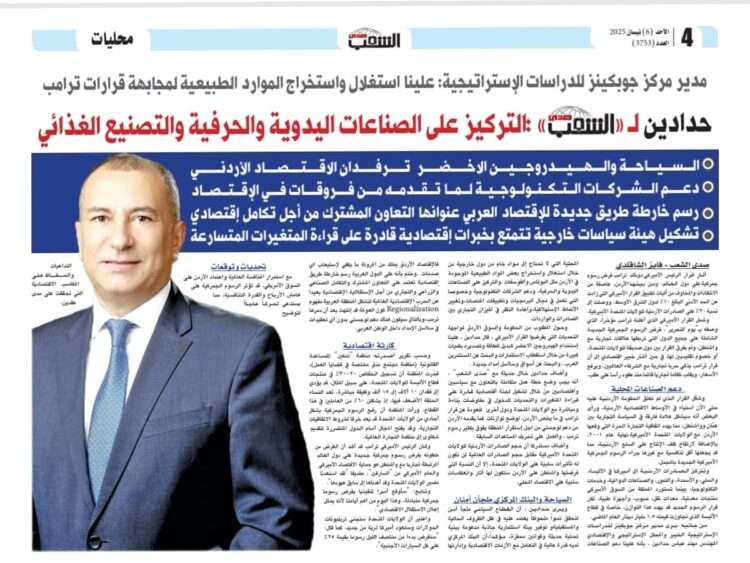 وأضاف حدادين خلال حديثة مع “صدى الشعب” ، أنه يجب وضع خطة عمل متكاملة بالتعاون مع سياسيين واقتصاديين من خلال تشكيل لجنة أقتصادية قادرة على قراءة المتغيرات والتحديات للدخول في مفاوضات بناءة ومباشرة مع الولايات المتحدة ودول أخرى للعودة عن قرار ترامب في ما يخص الأردن، لوضع توازنات فما يقدمه الأردن من دعم لوجستي من اجل إستقرار المنطقة يفوق بكثير رسوم ترمب ، والعمل على تحريك المساعدات السابقة .