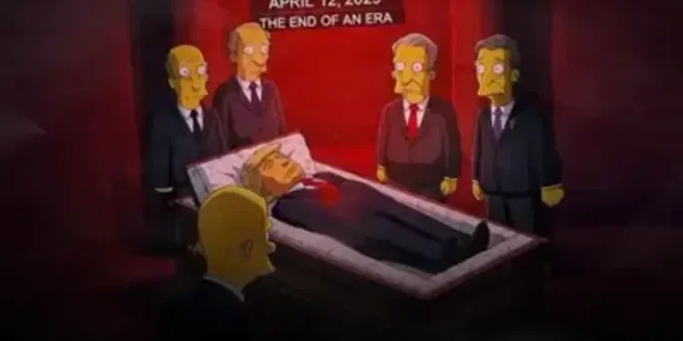 صدى الشعب – انتشر على مواقع التواصل الاجتماعي في الآونة الأخيرة، مقطع مصور قيل إنه مشهد من إحدى حلقات المسلسل الشهير “ذا سيمبسون” ويتوقع وفاة الرئيس الأميركي دونالد ترامب في 12 أبريل/ نيسان 2025.