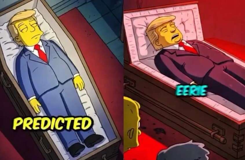وقد تبيّن أن مشهد نعش ترامب المنتشر على نطاق واسع من مسلسل “ذا سيمبسون” مُولّد بالذكاء الاصطناعي، وليس حقيقيًا.