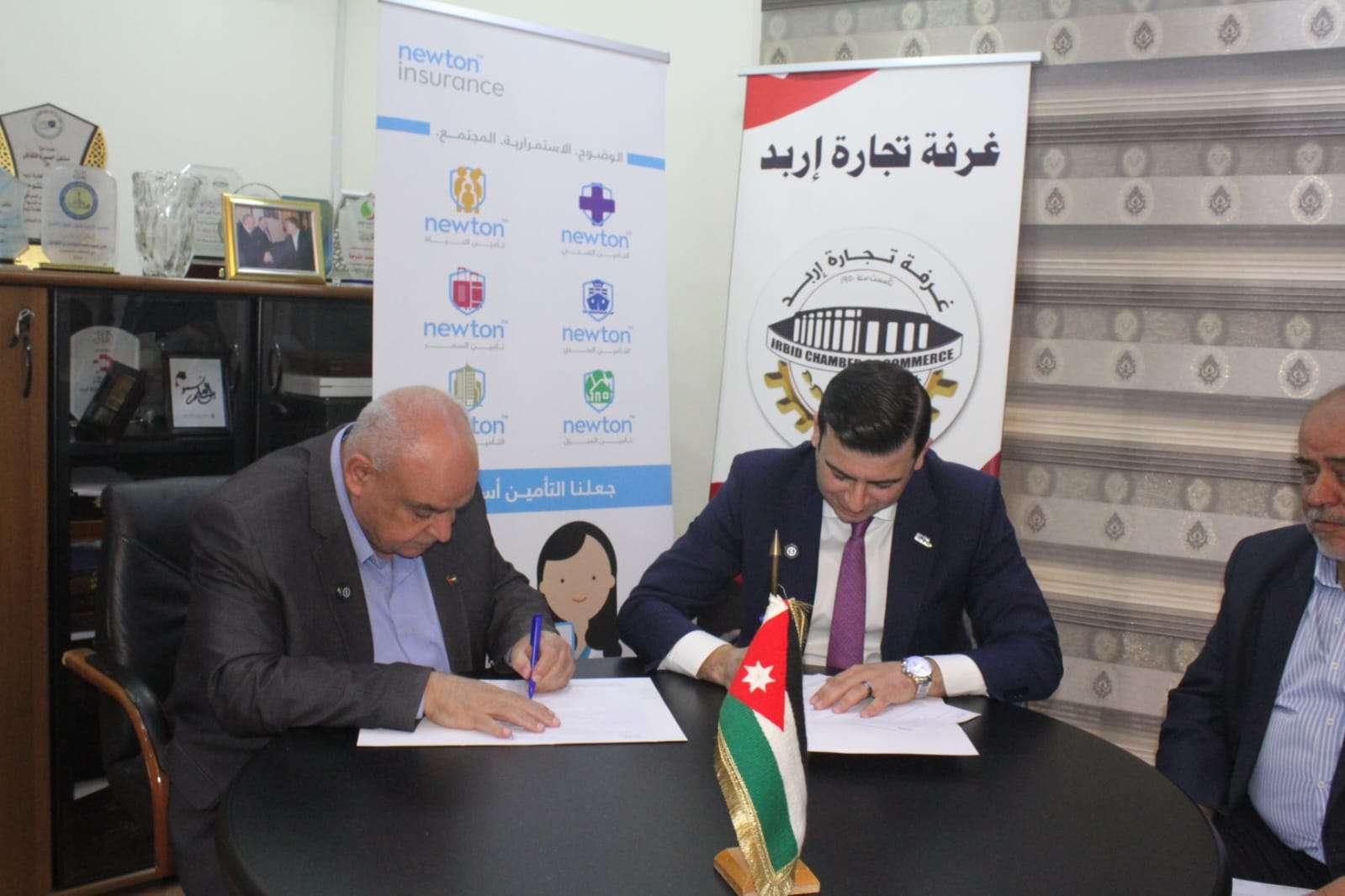 وتم توقيع الاتفاقية في مقر الغرفة بحضور رئيس غرفة تجارة إربد محمد الشوحة، والرئيس التنفيذي لشركة الأردن الدولية للتأمين “نيوتن” اسامة الزعبي ورئيس مجلس إدارة غرفة تجارة الأردن خليل محمد الحاج توفيق كما حضر التوقيع أعضاء مجلس ادارة الغرفة وممثلي الشركة.