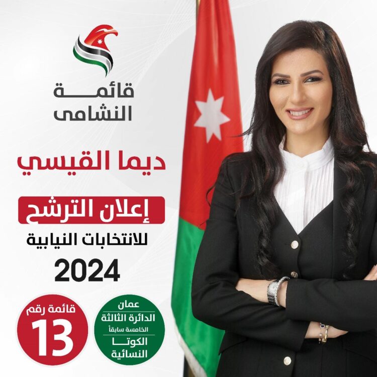 صدى الشعب – أعلنت ديما هشام القيسي ترشحها رسميا للانتخابات النيابية للمجلس ال٢٠ عن الكوتا النسائية في الدائرة الثالثة – عمان و تاليا بيان ترشح القيسي: