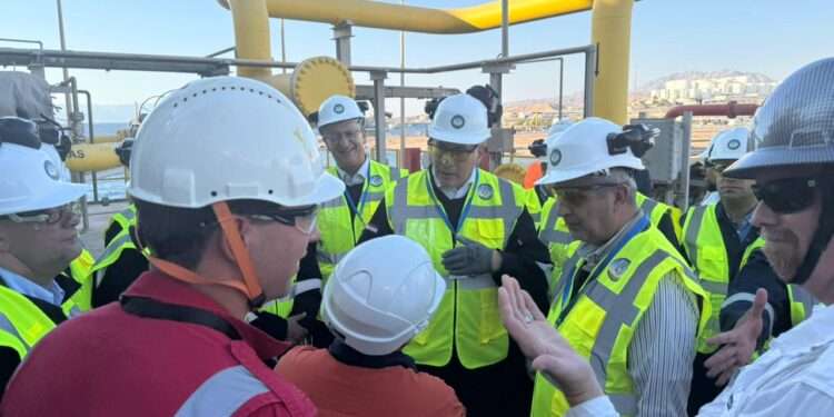 زار وزير الطاقة والثروة المعدنية الدكتور صالح الخرابشة، ونظيره المصري المهندس كريم بدوي، باخرة التخزين وإعادة التغييز العائمة “إنيرجوس فورس” (Energos Force)، التي وصلت إلى ميناء الشيخ صباح للغاز الطبيعي المسال يوم الجمعة الماضي، والمستأجرة من قبل الشركة المصرية القابضة للغازات الطبيعية (إيجاس).