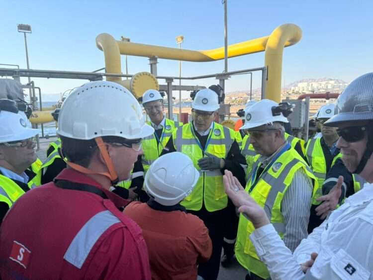 زار وزير الطاقة والثروة المعدنية الدكتور صالح الخرابشة، ونظيره المصري المهندس كريم بدوي، باخرة التخزين وإعادة التغييز العائمة “إنيرجوس فورس” (Energos Force)، التي وصلت إلى ميناء الشيخ صباح للغاز الطبيعي المسال يوم الجمعة الماضي، والمستأجرة من قبل الشركة المصرية القابضة للغازات الطبيعية (إيجاس).