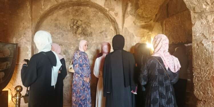 وتهدف هذه الزيارة على تعريف المشاركات بالمواقع الأثرية ذات البعد الديني والتاريخي، من أجل تعزيز الهوية الثقافية والدينية، وربط الجانب النظري بالواقع الميداني، وتنمية الشعور بالانتماء والتراث الحضاري.