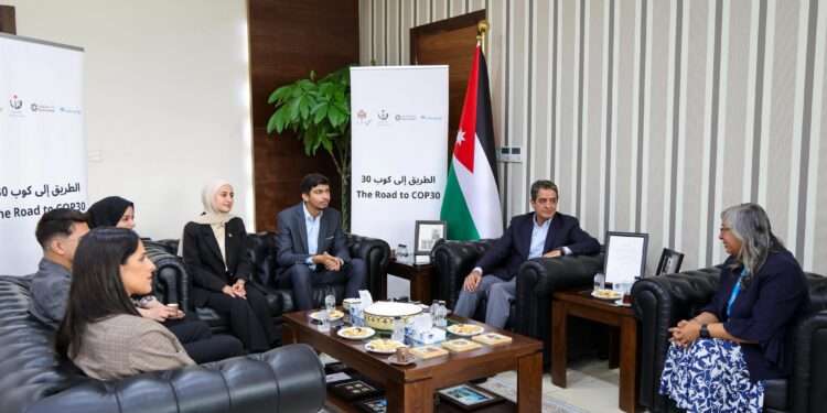 صدى الشعب – التقى وزير الشباب الدكتور رائد سامي العدوان أمس الأربعاء بالقادة الشباب في مجال التغير المناخي، الذين تم اختيارهم ضمن الوفد الأردني المشارك في مؤتمر الأمم المتحدة لتغير المناخ لعام 2025 (COP30)، والذي سيُعقد في مدينة بليم بالبرازيل، خلال الفترة من 10 إلى 21 تشرين الثاني 2025، بحضور القائمة بأعمال ممثل منظمة الأمم المتحدة للطفولة (اليونيسف) في الأردن شيروز موجي والمدير الأول للمسؤولية المجتمعية في بنك الاتحاد رند زعيتر.