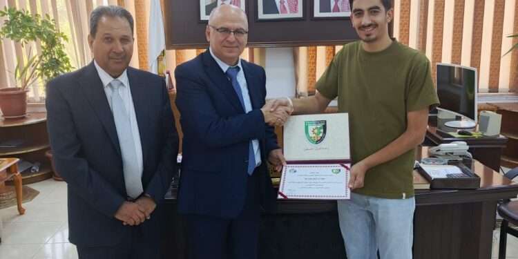 بتوجيه من الأستاذ الدكتور أحمد فخري العجلوني، رئيس جامعة البلقاء التطبيقية، كرم الأستاذ الدكتور بشار عماري، عميد كلية الحصن الجامعية، الطالب نمر الزيود الحاصل على المرتبة الذهبية والأولى عالميًا في مجال Power and Electric، لتأهله للمشاركة في مسابقة عالمية (Genius Olympiad)، التي ستُقام في جامعة Rochester Institute of Technology بالولايات المتحدة الأمريكية.
