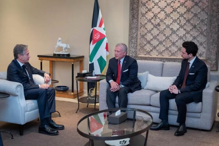 صدى الشعب – حذر جلالة الملك عبدالله الثاني لدى لقائه وزير الخارجية الأمريكي أنتوني بلينكن، اليوم الأحد، من التداعيات الكارثية لاستمرار العدوان على غزة، مشددا على ضرورة وضع حد للأزمة الإنسانية المأساوية في القطاع.