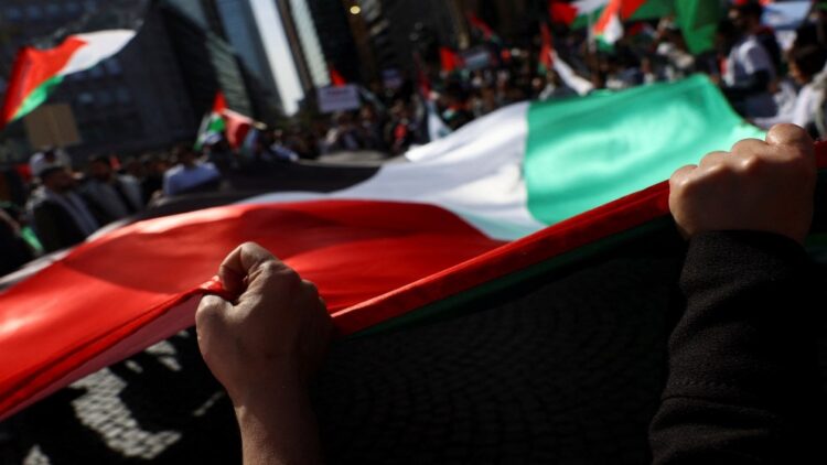 ورفع المتظاهرون لافتات وأعلام فلسطين مرددين شعارات “الحرية للشعب الفلسطيني” و”أوقفوا الإبادة في غزة”، و”هذه ليست حرب، وإنما إبادة جماعية” و”قفوا بجانب فلسطين”.