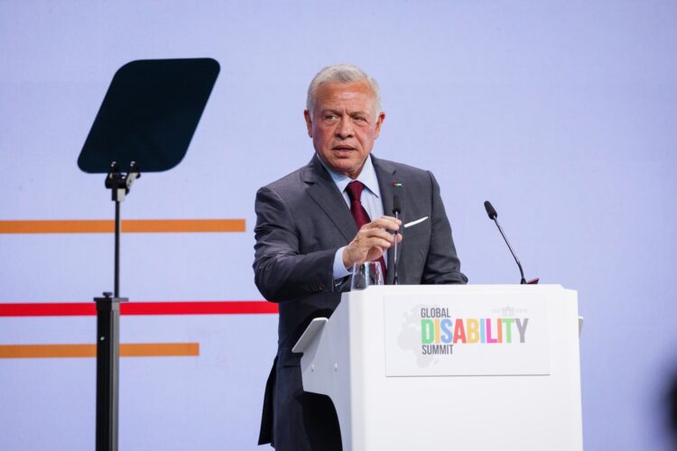دعا جلالة الملك عبد الله الثاني ملك الأردن إلى الالتزام والعمل المستمر لضمان أن يتمكن جميع الأفراد من العيش بكرامة وسعادة وأمل، مؤكداً أن الدمج لا يتعلق فقط بإمكانية الوصول، بل يتعلق أيضاً بالاعتراف بالإمكانات الكامنة في كل إنسان وخلق بيئات يمكن للجميع المساهمة فيها.