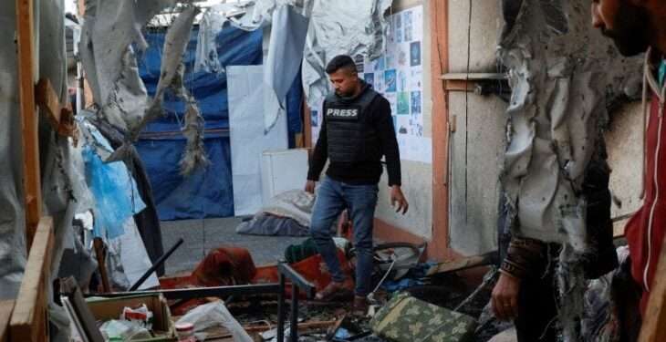 صدى الشعب – قال مسعفون ونقابة الصحافيين الفلسطينيين إن صحافيا فلسطينيا استشهد اليوم الاثنين وأُصيب 9 آخرون بعضهم في حالة خطيرة عندما استهدفت غارة جوية إسرائيلية خيمة تستخدمها وسائل إعلام محلية في جنوب قطاع غزة.