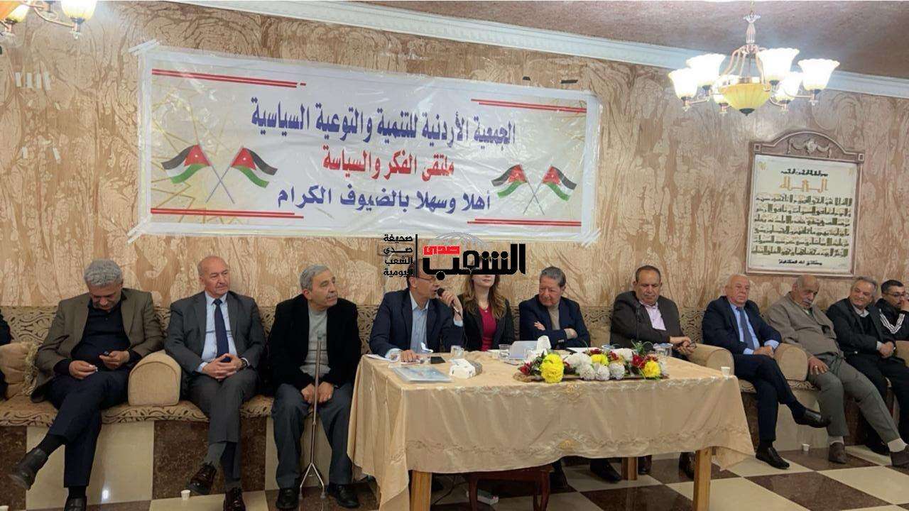 جاء الحديث في حوارية سياسيه أقامتها الجمعيه الاردنيه للتنميه والتوعية السياسيه في موقعها في محافظة الزرقاء القصبه عن الصراع في الإقليم ومستقبل المنطقه الجيوسياسية والأمنية وتداعيات ذلك الإنسان العربي والقضية الفلسطينية شارك فيها كل من ١.معالي الأستاذ الدكتور صبري ربيحات وزير التنمية السياسية الأسبق وسعاده الدكتوره روان الحياري كاتبه ومحلله سياسية وسعادة الاستاذ الدكتور غازي فيصل حسين رئيس المركز العراقي للدراسات الاستراتيجيه في عمان…والتي شهدت حضوراً نوعياً تضمن نقاشا سياسيا معمقا من الحضور النوعي الذي شمل كافه ابناء المحافظه.