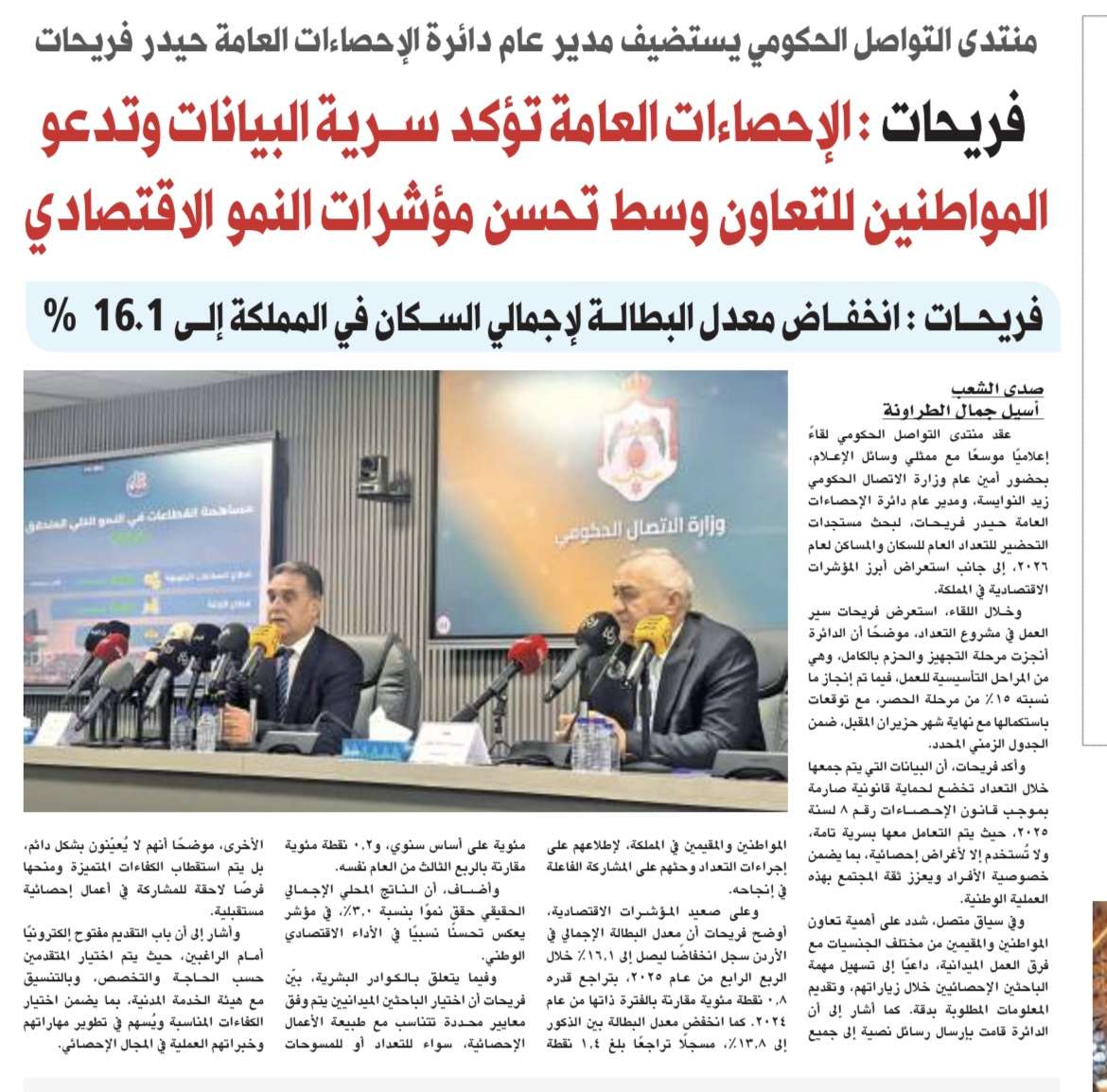 منتدى التواصل الحكومي يستضيف مدير عام دائرة الإحصاءات العامة حيدر فريحات