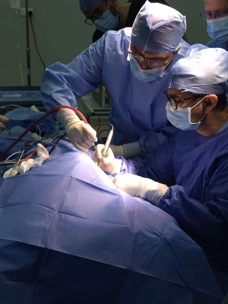 قام البروفيسور الدكتور فراس الزعبي باجراء العملية بدقة رغم الصعوبات المنوطة بالحالة ولم تحدث مضاعفات ، اذ تكللت العملية بحمد الله بالنجاح .