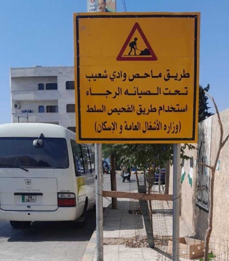ودعت الوزارة المتجهين الى مناطق الأغوار سلوك طريق العارضة كطريق بديل، علما أن الأعمال في منطقة وادي شعيب ستنفذ دون إغلاق أمام حركة السير، حيث سيتم اعتماد نظام التحويلات الجزئية، وتجهيز التحويلات المرورية وتجهيزها بكافة عناصر السلامة المرورية التي تحقق أعلى معايير السلامة العامة، التي يبقى عنصرها الأساس وعي وتعاون سالكي الطريق من خلال التقيد بقواعد القيادة الآمنة والالتزام بإرشادات وتعليمات الفرق العاملة في الميدان سواء من كوادر الوزارة والمقاول أو الشركاء من مديرية الامن العام.