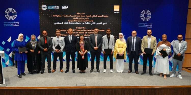 صدى الشعب – تحت رعاية صاحبة السمو الملكي الأميرة سمية بنت الحسن المعظمة، احتفلت أورنج الأردن وجامعة الأميرة سمية للتكنولوجيا والصندوق الأردني للريادة بتخريج الفوجين الثاني والثالث من حاضنة أورنج للذكاء الاصطناعي، المنفذة تحت مظلة مركز أورنج الرقمي والممولة من الصندوق، وبالشراكة مع الجامعة، وهي الأولى من نوعها في الأردن التي تستهدف المشاريع المبنية على تقنية الذكاء الاصطناعي.